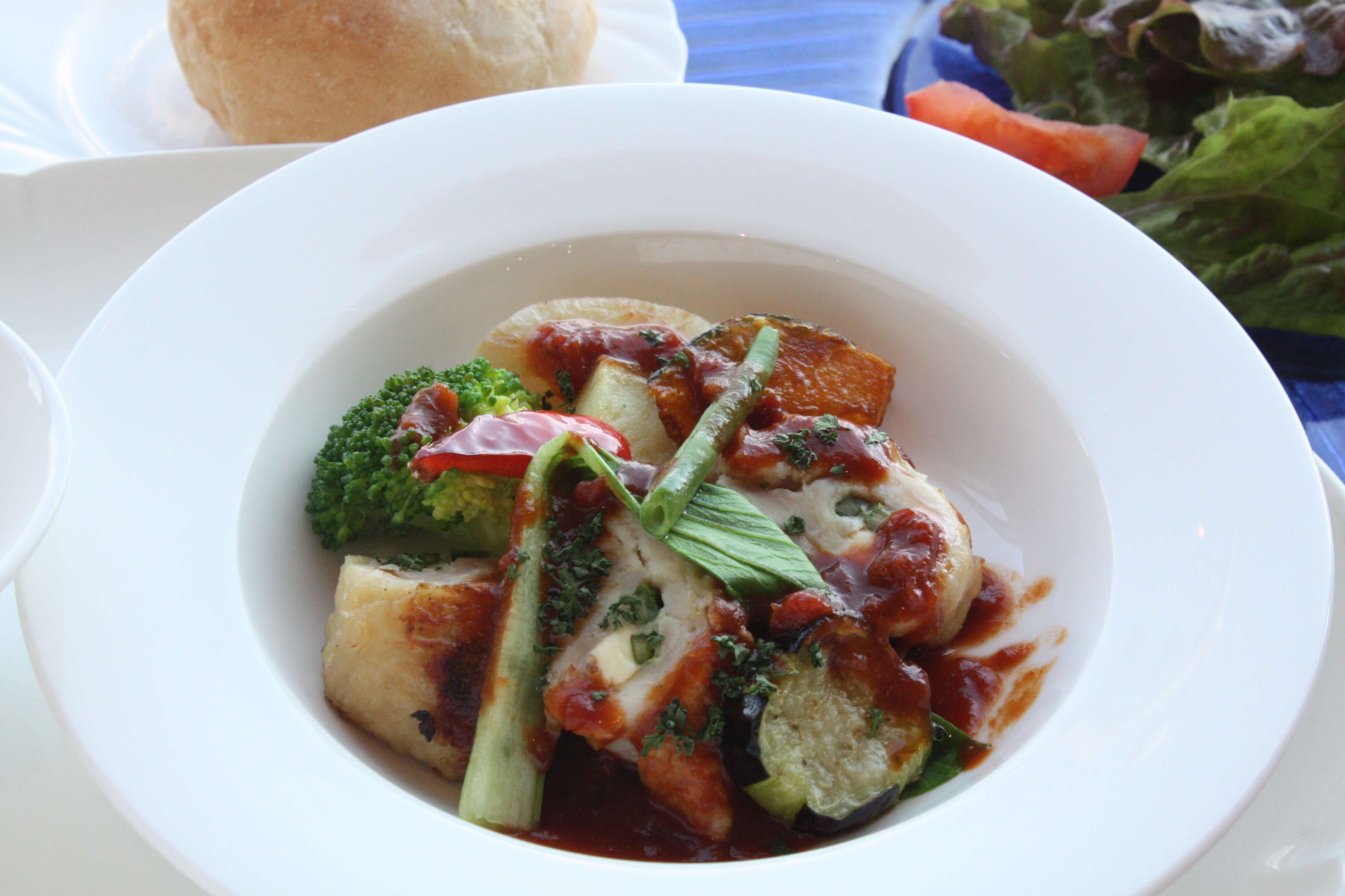 - 肉:牛ロースステーキ 季節の野菜添え(牛ヒレ+¥700税込¥770)